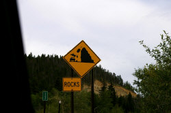 • Perhaps the reason they drive so much over the speed limit is the speed limits appear to be ridiculously low.  Also, you can go down a steep mountain that has a 65 mph speed limit and find a 35 mph sign at the bottom.  Tell that to your brakes.  I heard "locals" complain about how badly Texans drive, but every car that passed us in a "no passing" zone had New Mexico plates.